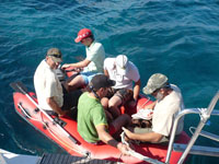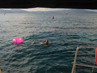 Nach einem improvisierten Frühstück ging es erst mal zum Schwimmen und Tauchen im herrlich klaren Wasser.