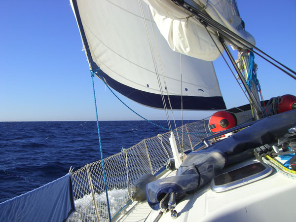 Bei Windstärken von bis zu 18 Knoten schafften wir dabei immerhin eine Geschwindigkeit von knapp 8 Knoten.