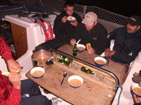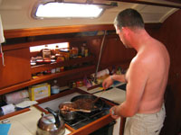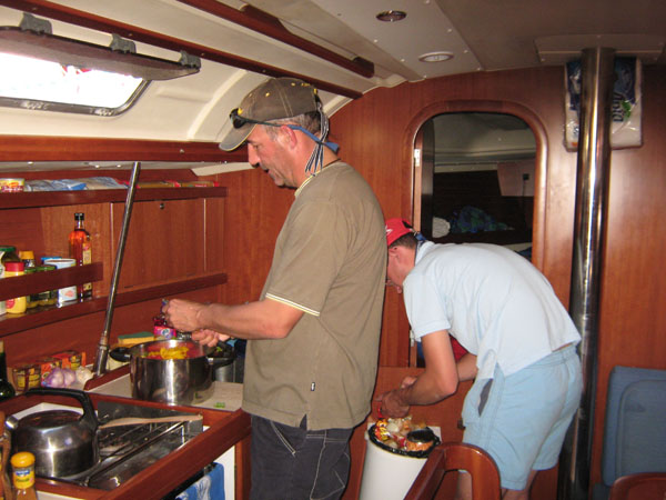 auf das Boot zurück um das Abendessen vorzubreiten. Da Christof von seinen Kochkünsten so beflügelt war,