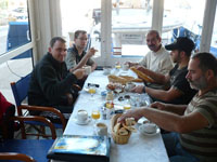 Wie üblich genehmigten wir uns zuerst einmal ein 'petite dejeuner' an einem der wenigen Hafenlokale und anschließend