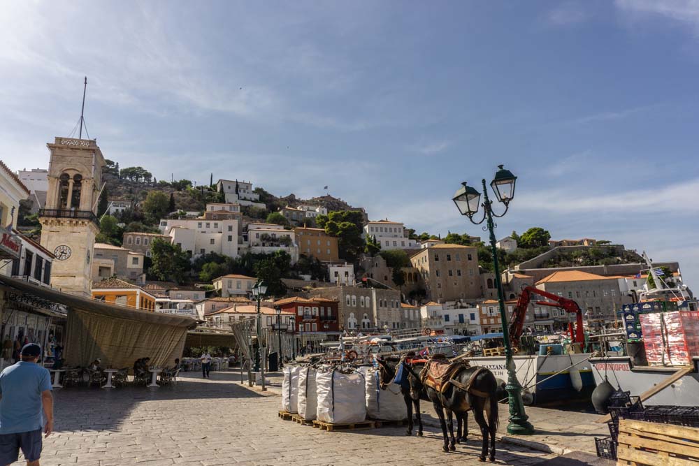 Martin brachte uns mit dem Dingi an Land und Armin, Ralf und ich machten uns auf, die Stadt Hydra zu erkunden, die durch eine gut ausgebaute Uferpromenade mit der