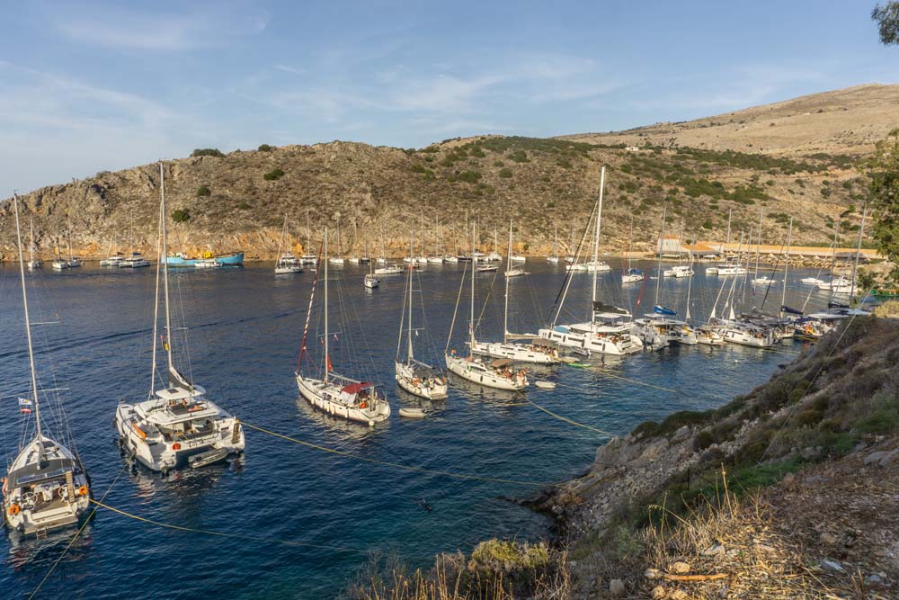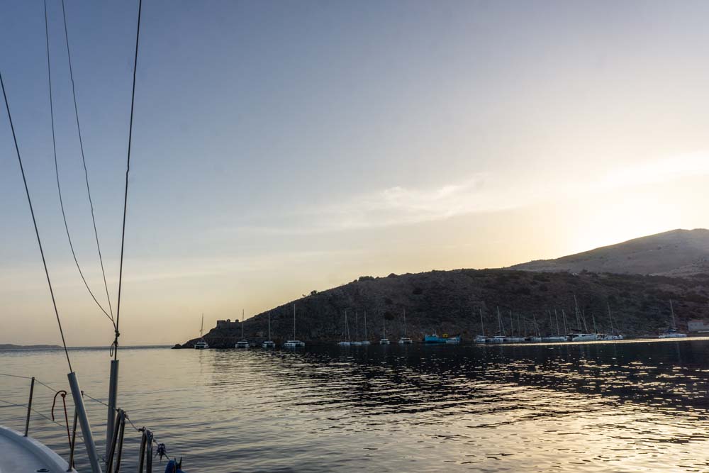 da hier Ankersalat aufgrund der Enge und fehlender Steginfrastruktur an der Tagesordnung war, sondern eine Seemeile weiter in der malerischen Bucht von Mandraki