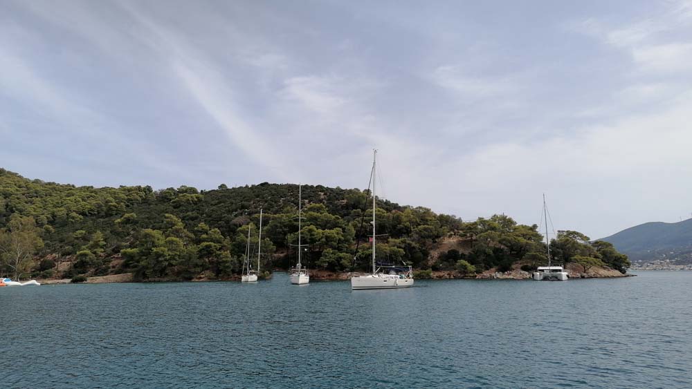 Am frühen Vormittag passierten wir wieder die Altstadt von Poros und legten Kurs auf Ormos Rossikou die auch als Russian Bay bezeichnet wird (hier befand