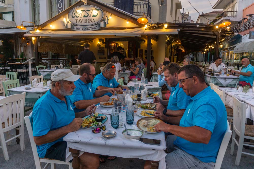 Den Abend verbrachten wir in einer malerischen Taverne direkt am Hafen bei sehr leckerem griechischen Essen. Nach einem letzten Absacker verkroch sich der eine Teil der Crew