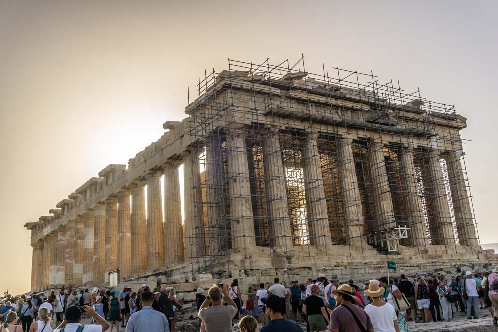 Schon von weitem ist der Parthenon-Tempel auf dem 156 Meter hohen Berg zu sehen. Allerdings ist mit der Bezeichnung Akropolis nicht nur dieser Tempel, sondern