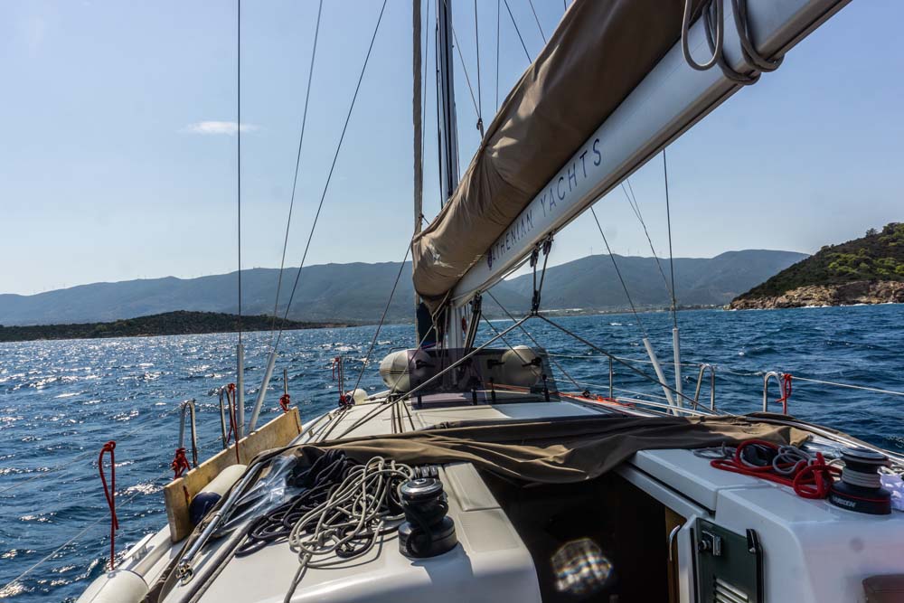 Zuerst kamen wir unter Segel noch gut voran, doch je näher wir dem argolischen Golf kamen, schlief der Wind nach und nach ein.