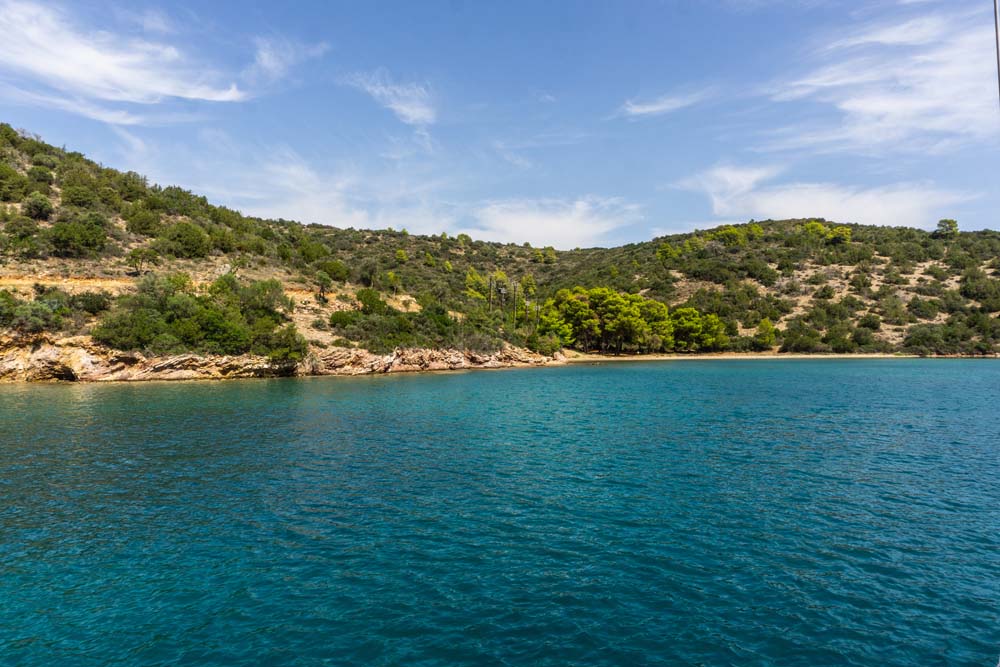Schnell kam die Südküste von Ägina mit ihren reizvollen Badebuchten in Sicht.