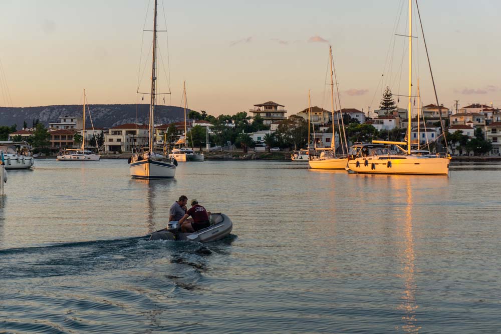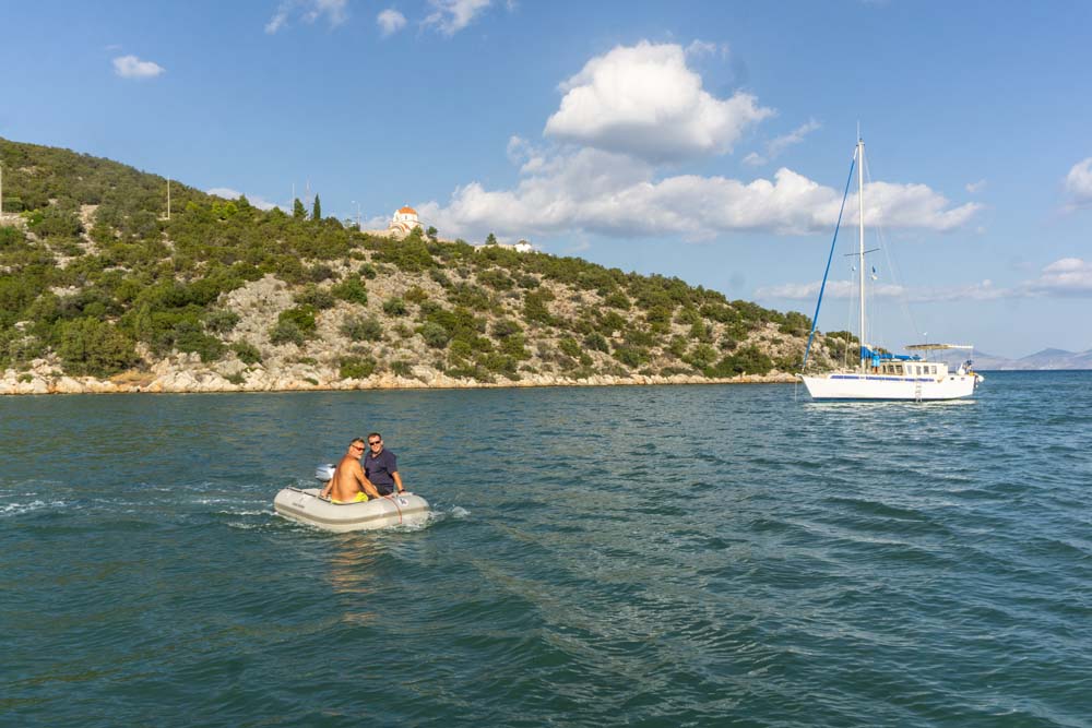 Sogleich machten sich Martin und Reno mit dem Dingi auf nach Hydra-Stadt, während wir an Bord alles für das Auslaufen vorbereiteten und dann Richtung Hydra aufbrachen.