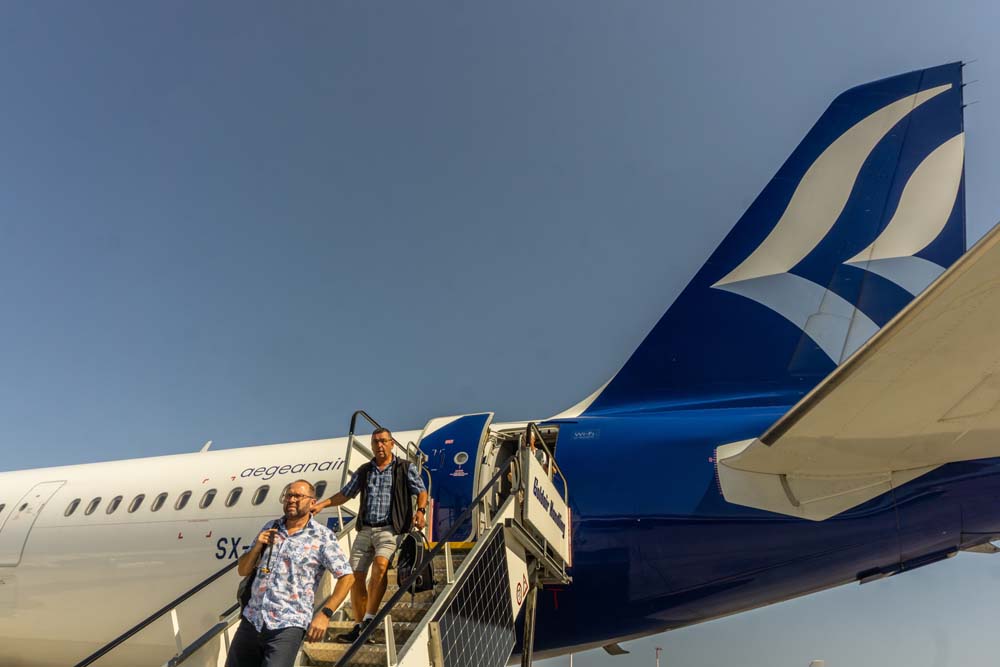 Verspätung hoben wir ab Richtung Süden und nach einem eineinhalb-stündigen Zwischenstop in Zürich landeten wir pünktlich um 15 Uhr Ortszeit auf dem Athener Flughafen.